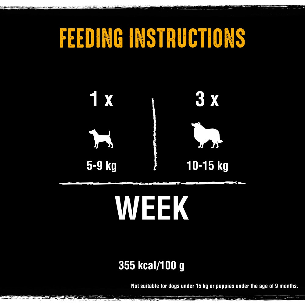 Natural Chicken (34.3%), Potato Starch, Rawhide, Glycerol, Tapioca Starch, Caramel, Rapeseed OilNUTRITIONAL INFO